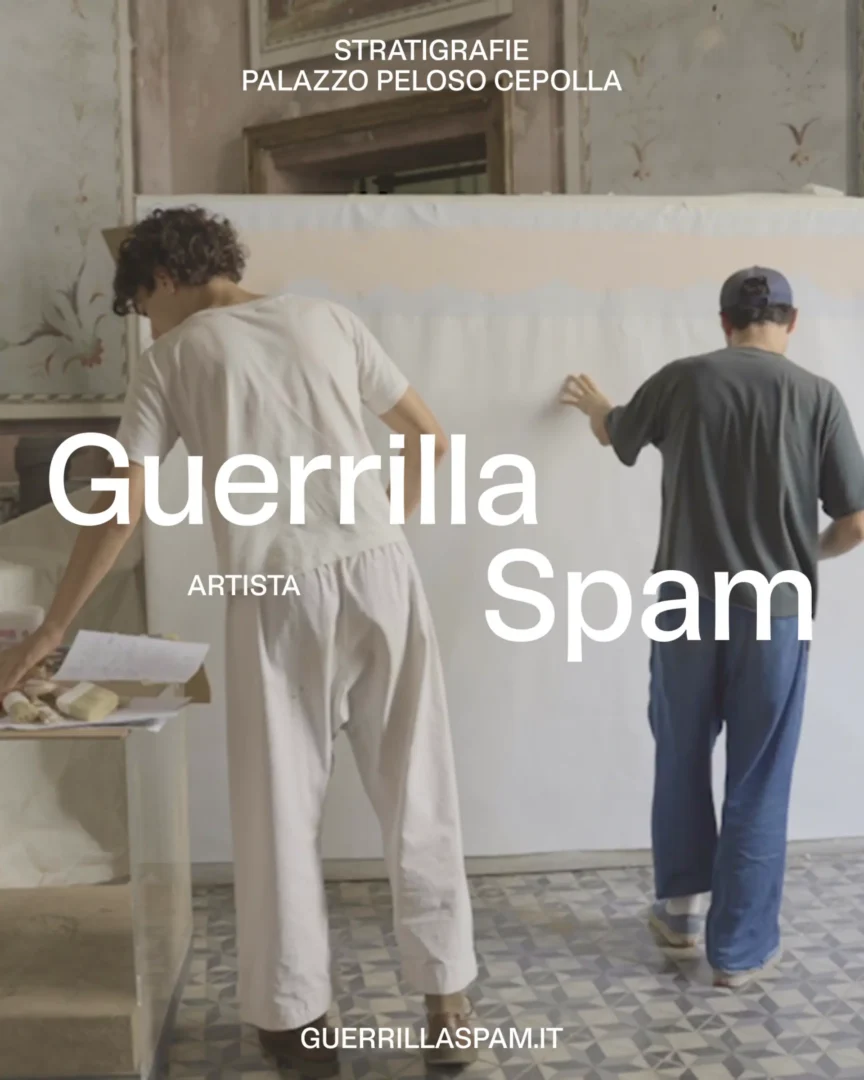 Un’operazione che ha visto il coinvolgimento di Guerrilla Spam, collettivo artistico che dal 2010 lavora nello spazio pubblico con l’intento di rivolgersi alla collettività, attraverso un dialogo tra passato e presente, in un risultato familiare ma anche alieno. Interventi artistici caratterizzati da un profondo lavoro di studio e ricerca di apparati iconografici, grafismi primitivi, simbolismi, fonti antropologiche e storie popolari, che riprendono e rielaborano in un linguaggio concettuale, parlando della complessità e delle conflittualità dell’oggi. Un lavoro che guarda al passato, non come riproposizione di una corrente o di un gusto, bensì come materia viva e attiva, capace di comunicare al pubblico contemporaneo, spesso provocando e smuovendo le coscienze.