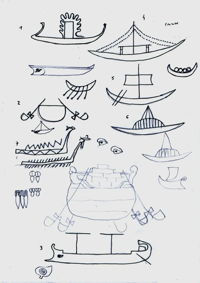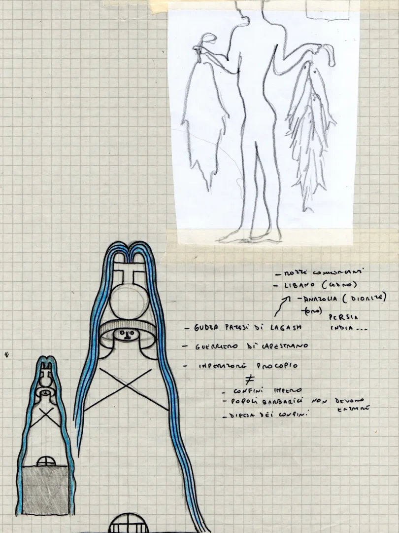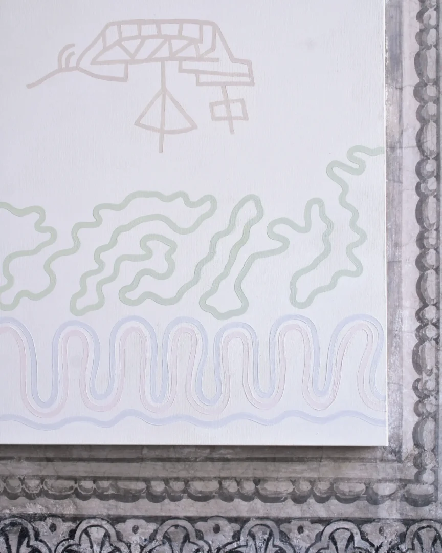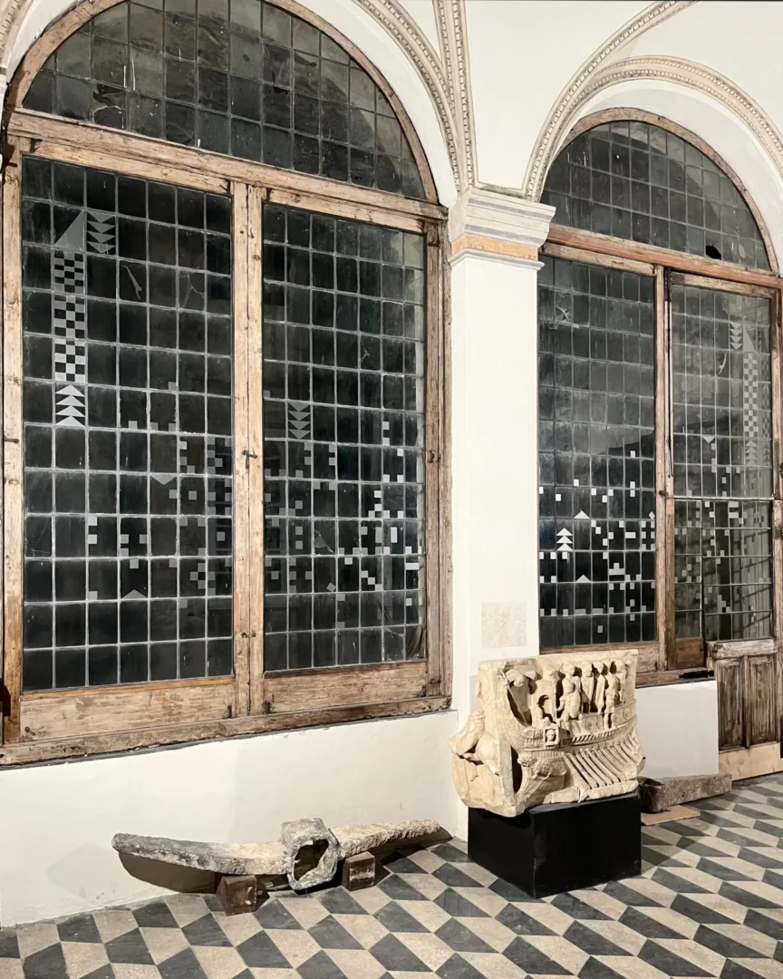 Il legame del Palazzo con il mare, espresso dagli apparati decorativi oltreché dalla presenza del Museo Navale Romano, rappresenta il fil rouge che connette le tre opere site-specific. Un tema caro e ampiamente indagato nella ricerca di Guerrilla Spam, che qui assume significati e sfaccettature differenti, in un climax concettuale e narrativo. “I pescatori” parla del mare come fonte di nutrimento e di vita, spazio di speranza per chi pesca così come per chi lo naviga in cerca di una nuova occasione; “I naviganti” ne mostra il lato più relazionale e di scambio, rivelando le connessioni che da secoli caratterizzano il Mediterraneo e i popoli che vi si affacciano; infine “I tuffatori” esplorano il mare come espressione di conoscenza, libertà e sguardo verso il futuro. Tematiche che emergono nel quotidiano, oggi più che mai.